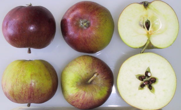 Vintage quality, i.e. well enough balanced in sugar, tannin and acid content to make a single variety cider. An old cider apple which arose in the Martock area Somerset. Believed to have been named after a Mr Dabinett. Possibly a seedling of Chisel Jersey. Crops regularly. Fruits have slightly crisp flesh with a sweet, astringent, strong fruity flavour when ripe. Dabinett is weak grower producing a small and spreading tree. It is self-fertile and crops well.